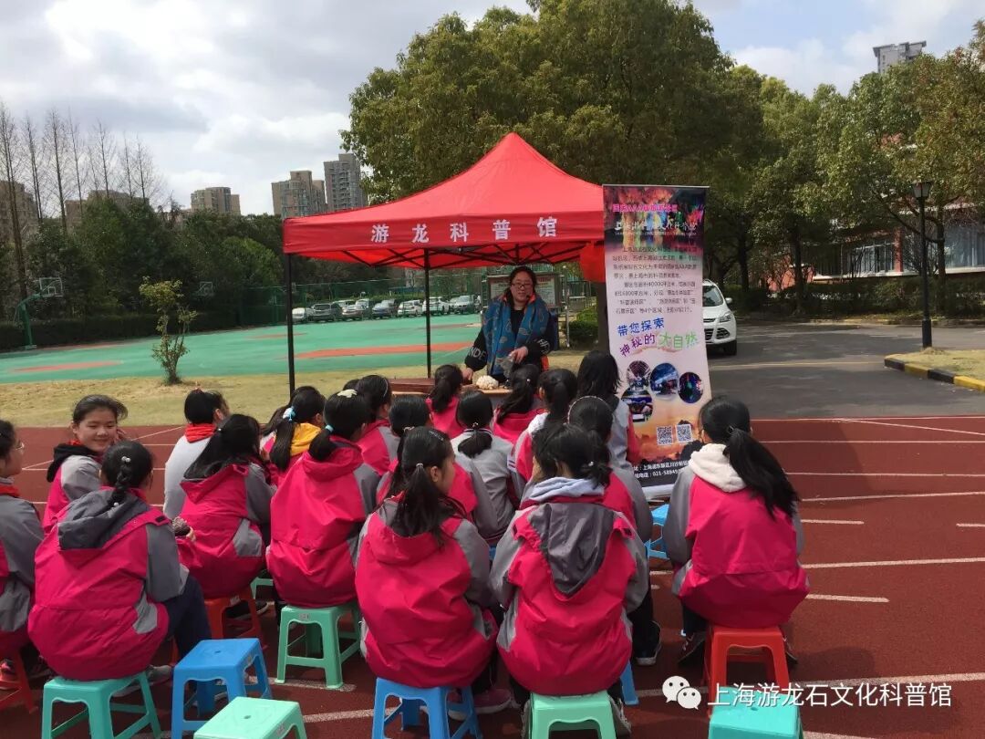 3月22日,初春乍暖还寒。天气犹如过山车般忽冷忽热,时晴时雨。天空有点灰暗,淘气的太阳又去流浪了,体感阴冷。然我们上海游龙石文化科普馆和其它科普基地一起,依旧热情不减,来到市建平香梅中学操场,参加香梅中学科技嘉年华暨校园开放日之科普校园行活动。